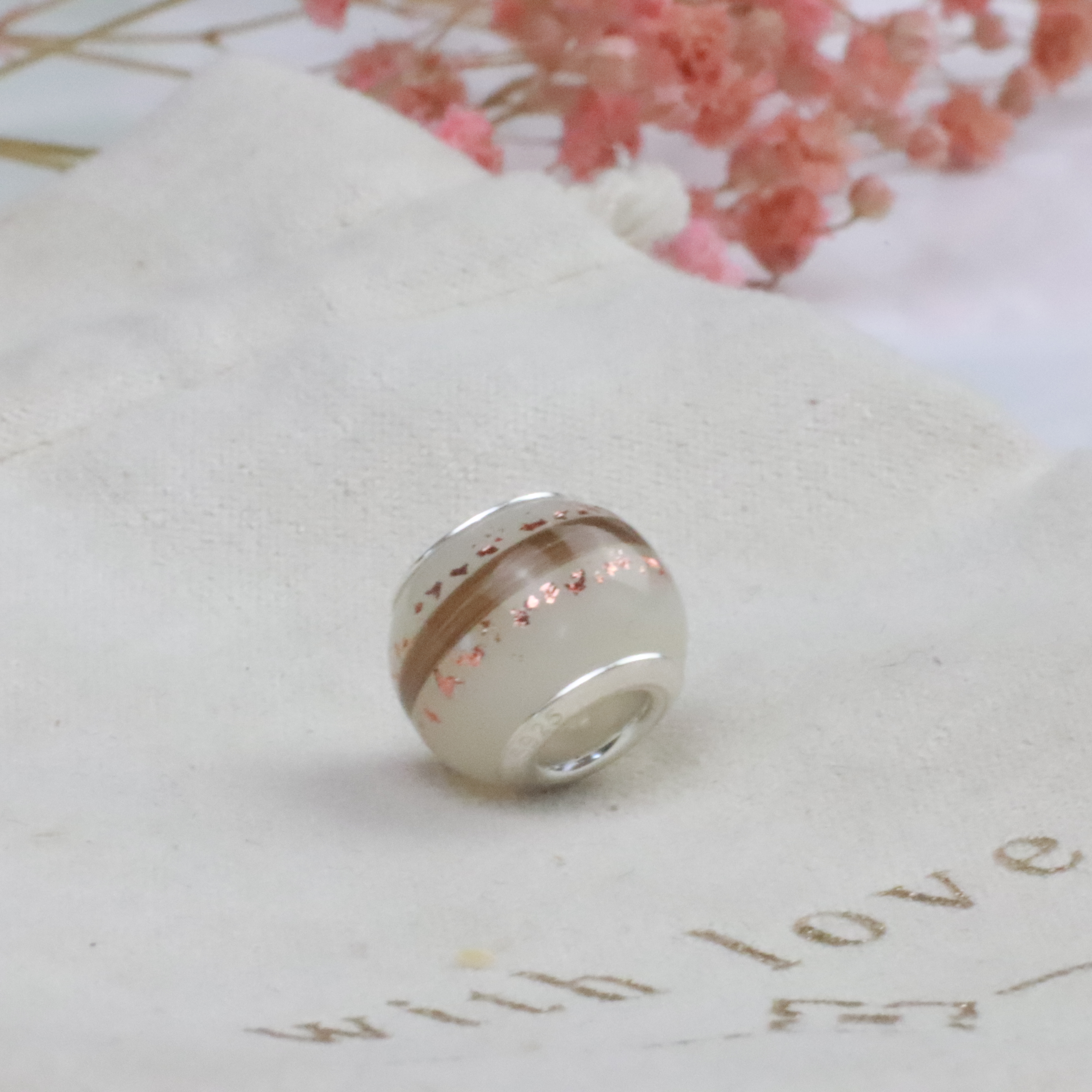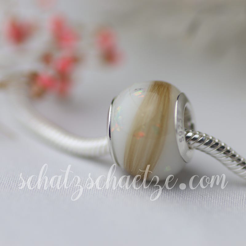 Die Großlochperle ist super geeignet für viele Einarbeitungen. Man kann sie am Armband tragen und an der Halskette.
